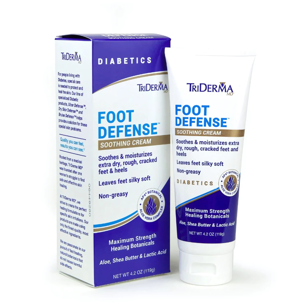Genuine Virgin Aloe TriDerma Diabetic Foot Defense Soothing Healing Cream is specifically designed to provide advanced care for diabetic feet, helping to relieve dryness, cracks, and irritation while promoting faster healing. This concentrated, non-greasy formula combines the power of AP4 Aloe Vera Complex, Urea, Lactic Acid, and Shea Butter to deeply moisturize, soothe discomfort, and restore skin to a soft, healthy condition. Gentle yet effective, it’s ideal for individuals with diabetes who need reliable daily foot care that supports skin repair and prevents further damage.